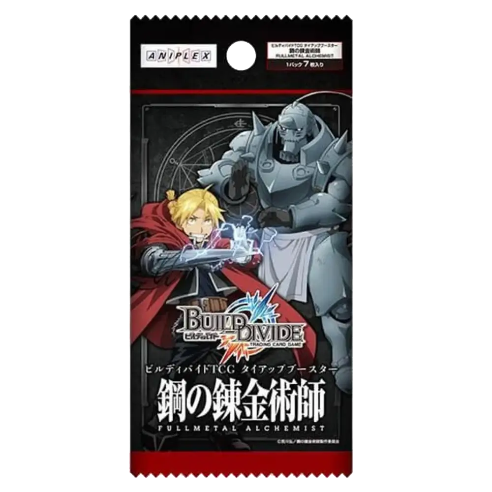 Step into the world of alchemy and adventure with the Build Divide Fullmetal Alchemist Booster Pack — a must-have for fans and collectors alike!