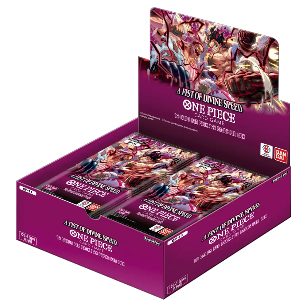 The Straw Hat Pirates return in A Fist of Divine Speed, the OP-11 English booster set for the One Piece Card Game! New characters, powerful events, and dazzling artwork await – so sharpen your swords and set sail!