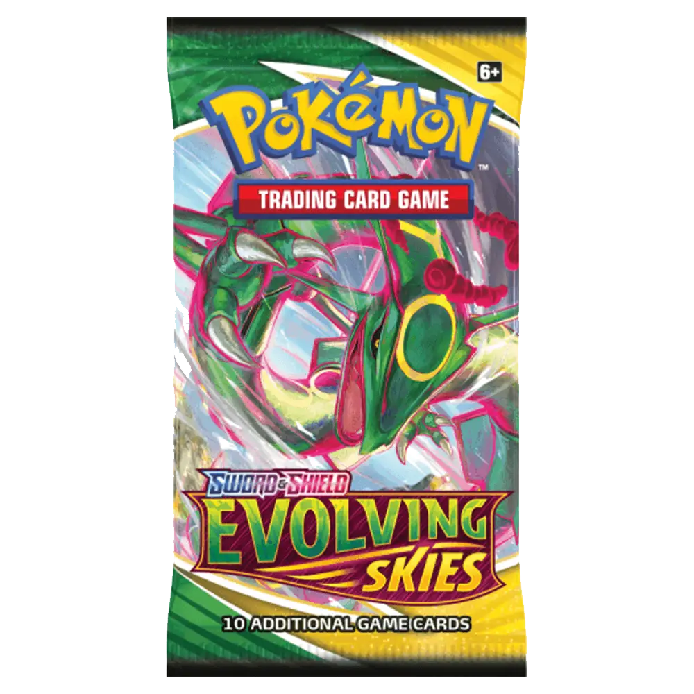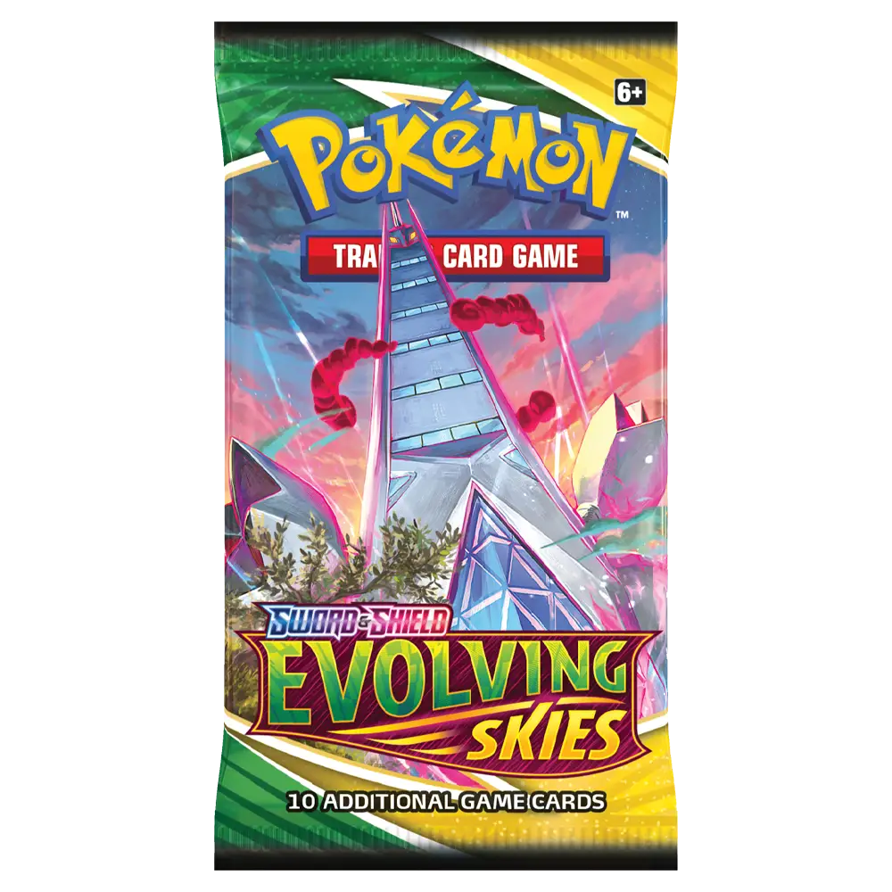 Soar to new heights with the Evolving Skies Booster Pack, part of the Sword & Shield series. Featuring powerful Dragon-type Pokémon and fan-favourite Eeveelutions, this set is a must-have for collectors and competitive players alike.
